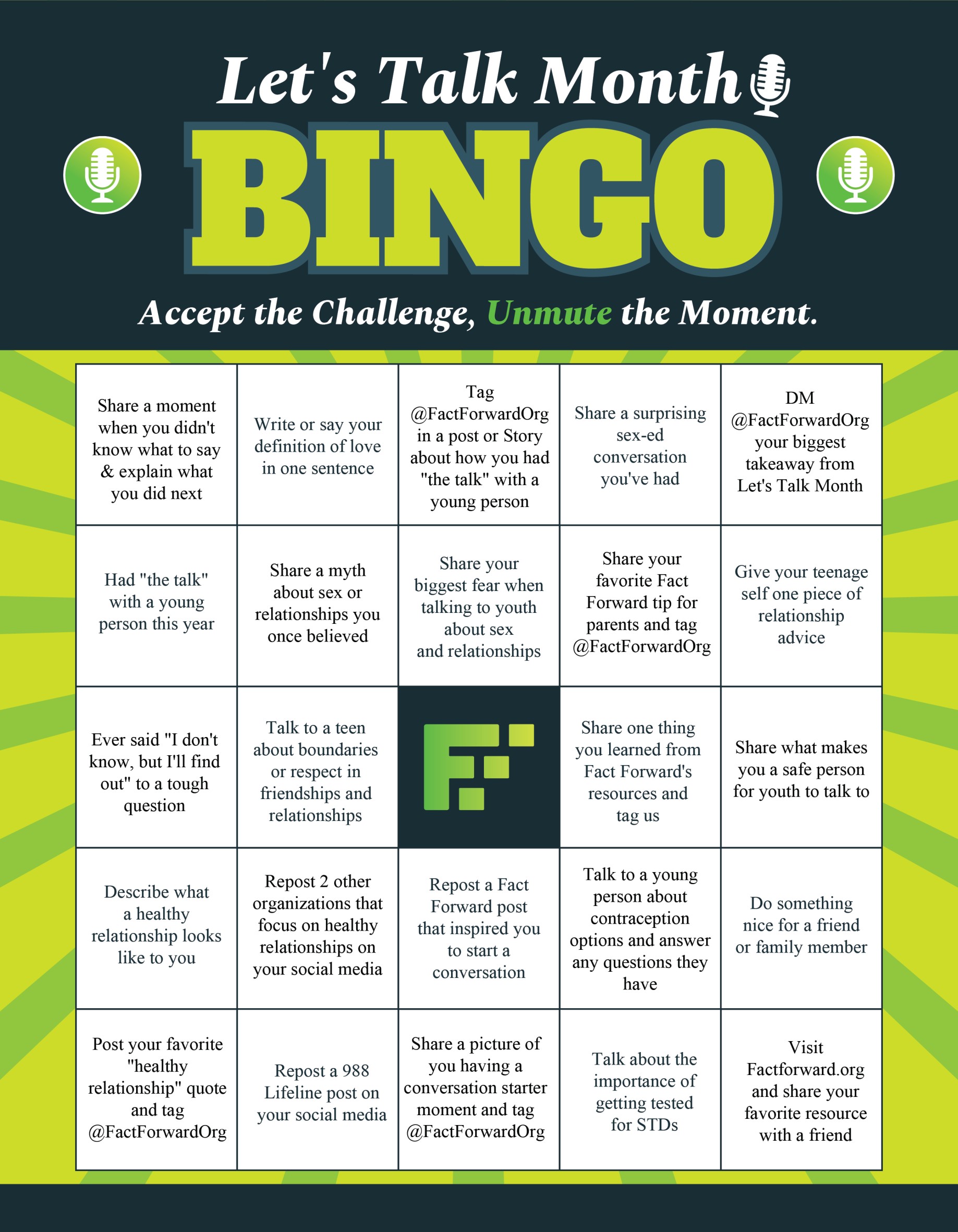 Every October, Fact Forward participates in Let’s Talk Month, a public awareness campaign founded by Advocates for Youth that encourages open communication between young people and their parents or other trusted adults.